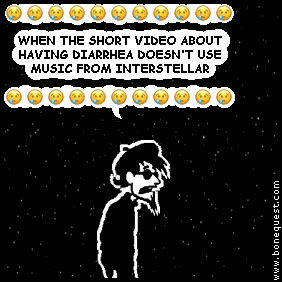 spigot: :CRY: :CRY: :CRY: :CRY: :CRY: :CRY: :CRY: :CRY: :CRY: :CRY: :CRY: WHEN THE SHORT VIDEO ABOUT HAVING DIARRHEA DOESN'T USE MUSIC FROM INTERSTELLAR :CRY: :CRY: :CRY: :CRY: :CRY: :CRY: :CRY: :CRY: :CRY: :CRY: :CRY: