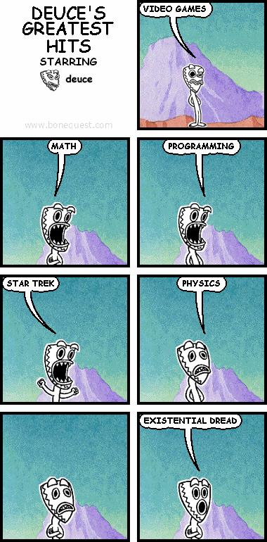 deuce: VIDEO GAMES deuce: MATH deuce: PROGRAMMING deuce: STAR TREK deuce: PHYSICS deuce: EXISTENTIAL DREAD
