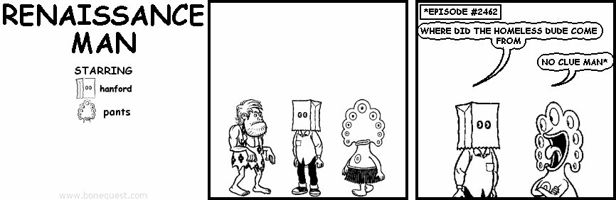 hanford: WHERE DID THE HOMELESS DUDE COME FROM pants: NO CLUE MAN*