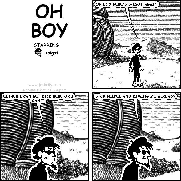 spigot: OH BOY HERE'S SPIGOT AGAIN spigot: EITHER I CAN GET DICK HERE OR I CAN'T spigot: STOP NICKEL AND DIMING ME ALREADY