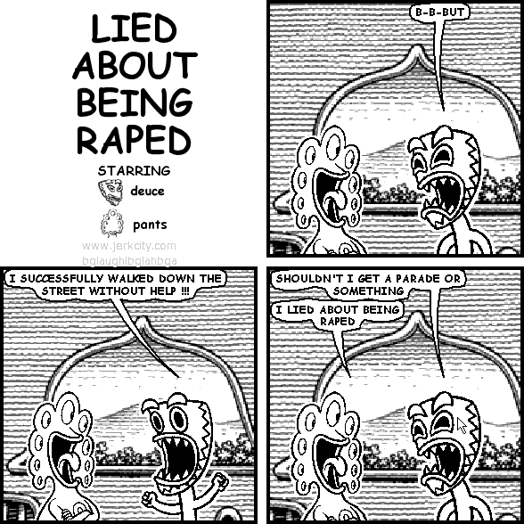 deuce: B-B-BUT deuce: I SUCCESSFULLY WALKED DOWN THE STREET WITHOUT HELP !!! deuce: SHOULDN'T I GET A PARADE OR SOMETHING pants: I LIED ABOUT BEING RAPED