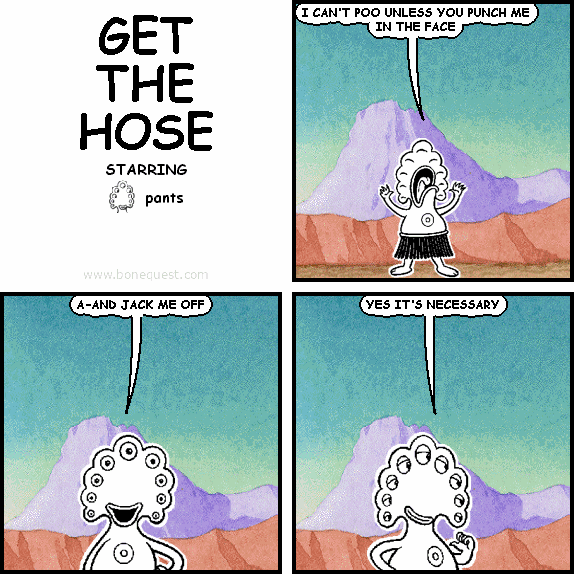 pants: I CAN'T POO UNLESS YOU PUNCH ME IN THE FACE pants: A-AND JACK ME OFF pants: YES IT'S NECESSARY
