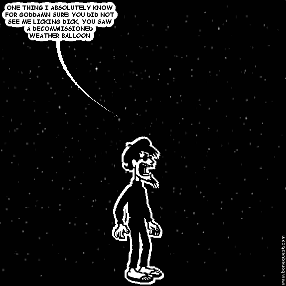 spigot: ONE THING I ABSOLUTELY KNOW FOR GODDAMN SURE: YOU DID NOT SEE ME LICKING DICK, YOU SAW A DECOMMISSIONED WEATHER BALLOON