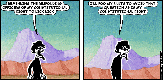 spigot: REMINDING THE RESPONDING OFFICERS OF MY CONSTITUTIONAL RIGHT TO LICK DICK spigot: I'LL POO MY PANTS TO AVOID THAT QUESTION AS IS MY CONSTITUTIONAL RIGHT