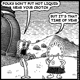 deuce: FOLKS DON'T PUT HOT LIQUID NEAR YOUR CROTCH pants: BUT IT'S THAT TIME OF YEAR