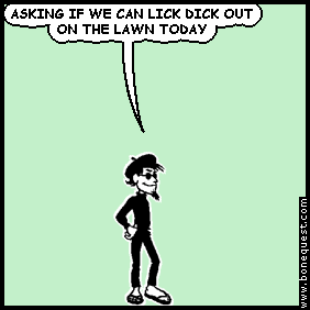 spigot: ASKING IF WE CAN LICK DICK OUT ON THE LAWN TODAY