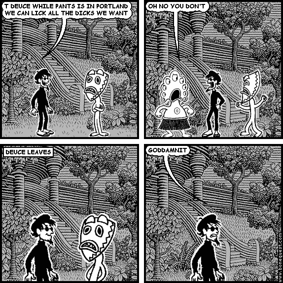 spigot: T DEUCE WHILE PANTS IS IN PORTLAND WE CAN LICK ALL THE DICKS WE WANT pants: OH NO YOU DON'T spigot: GODDAMNIT