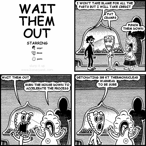 spigot: I WON'T TAKE BLAME FOR ALL THE FARTS BUT I WILL TAKE CREDIT