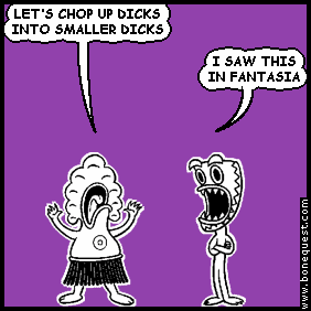 pants: LET'S CHOP UP DICKS INTO SMALLER DICKS deuce: I SAW THIS IN FANTASIA