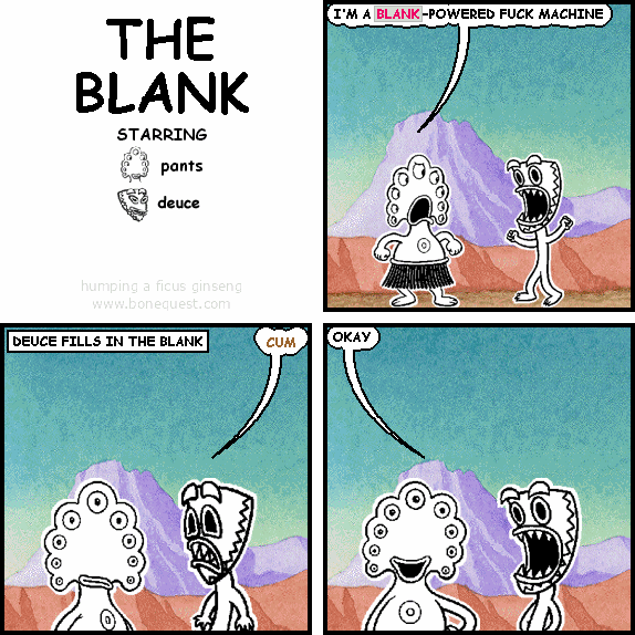 pants: I'M A `BLANK`-POWERED FUCK MACHINE :deuce: IN THE BLANK deuce: _CUM_ pants: OKAY